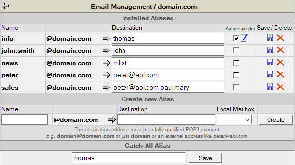 Email Manager - Managing E-Mail Addresses (Aliases)