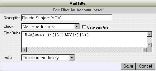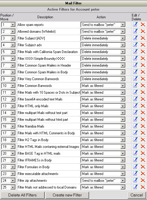 This rule catches all mails containing either the word "cash", "dollar" or "visit"