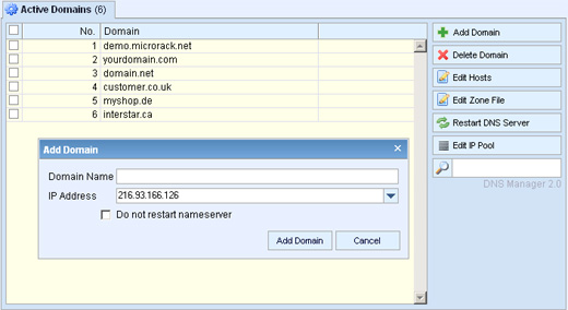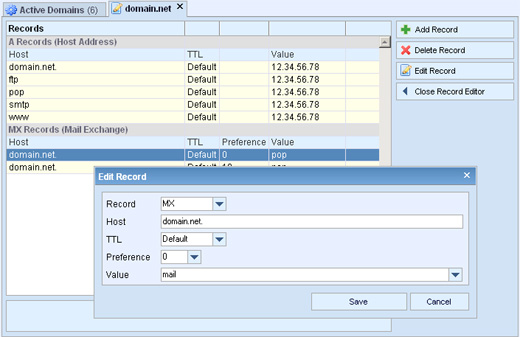 The DNS Manager is used to manage your dedicated domain name server (DNS).
