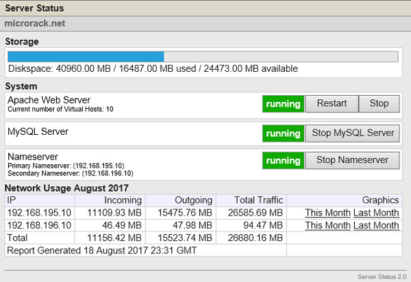 These servers can be started, stopped and restarted from the Server Status